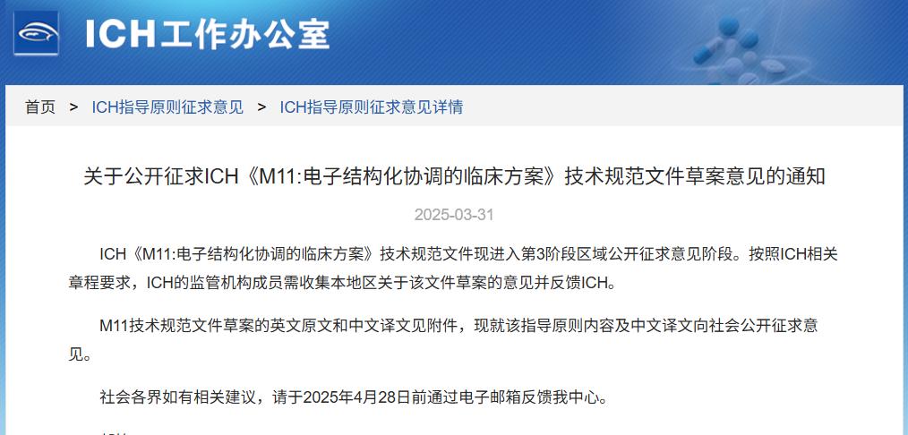 政策法規(guī) || 關(guān)于公開(kāi)征求ICH《M11:電子結(jié)構(gòu)化協(xié)調(diào)的臨床方案》技術(shù)規(guī)范文件草案意見(jiàn)的通知(附法規(guī)概覽3.31-4.3)
