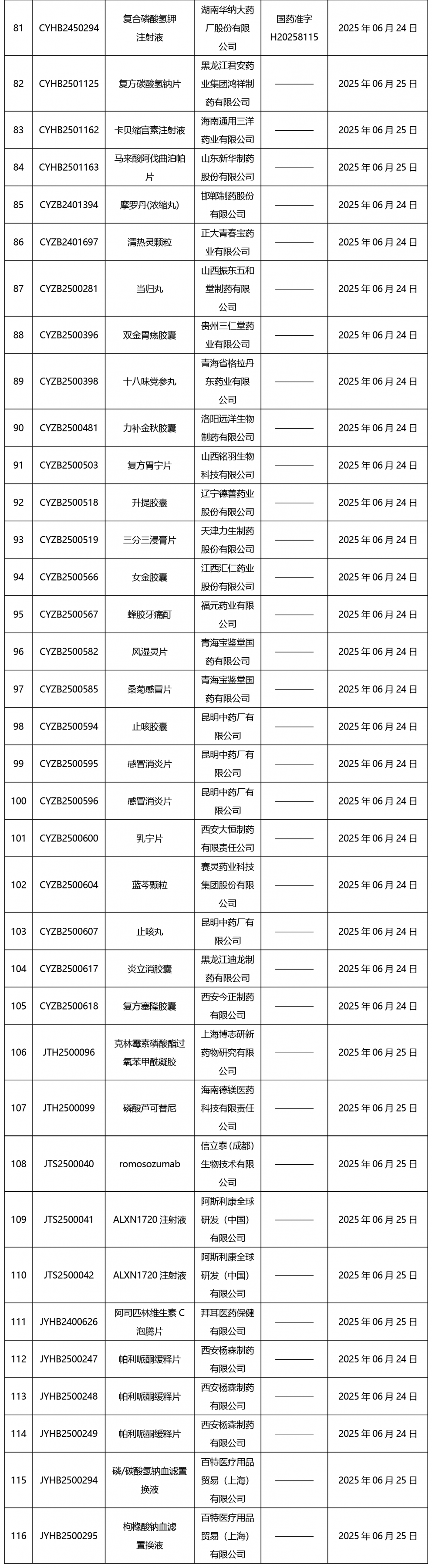 本周(截止到6月27日17:00)共發(fā)布藥品批準證明文件送達信息116個。