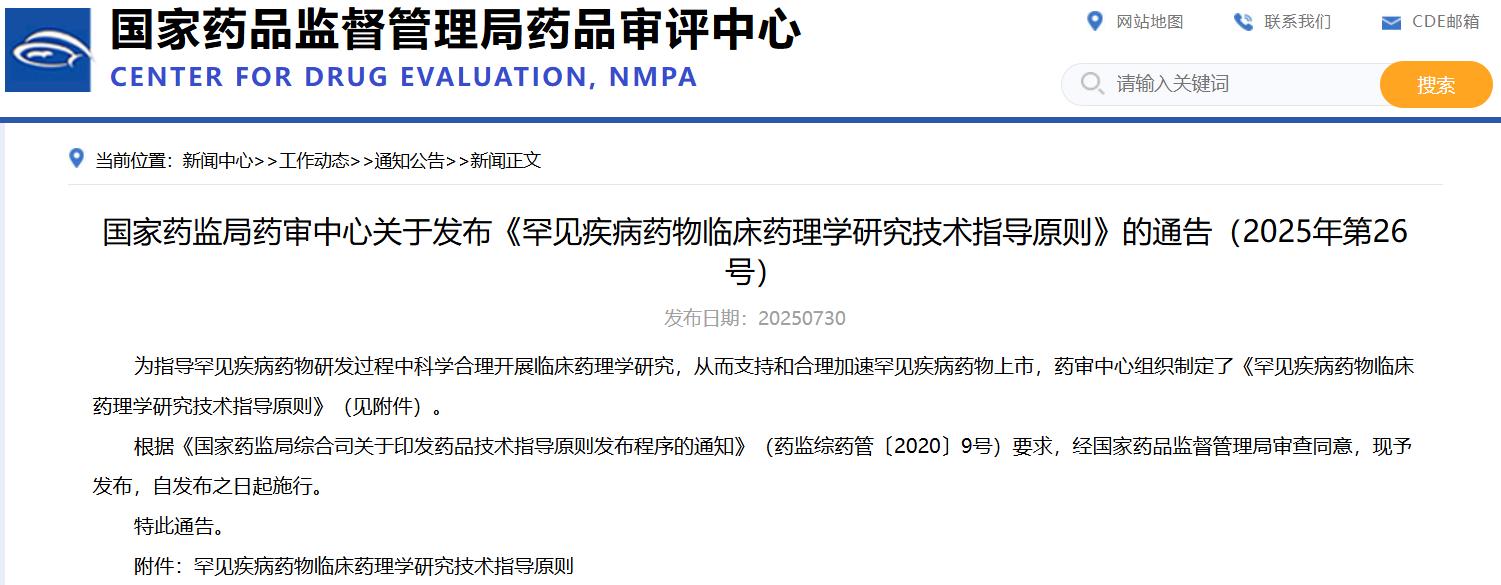 國(guó)家藥監(jiān)局藥審中心關(guān)于發(fā)布《罕見(jiàn)疾病藥物臨床藥理學(xué)研究技術(shù)指導(dǎo)原則》的通告(2025年第26號(hào))