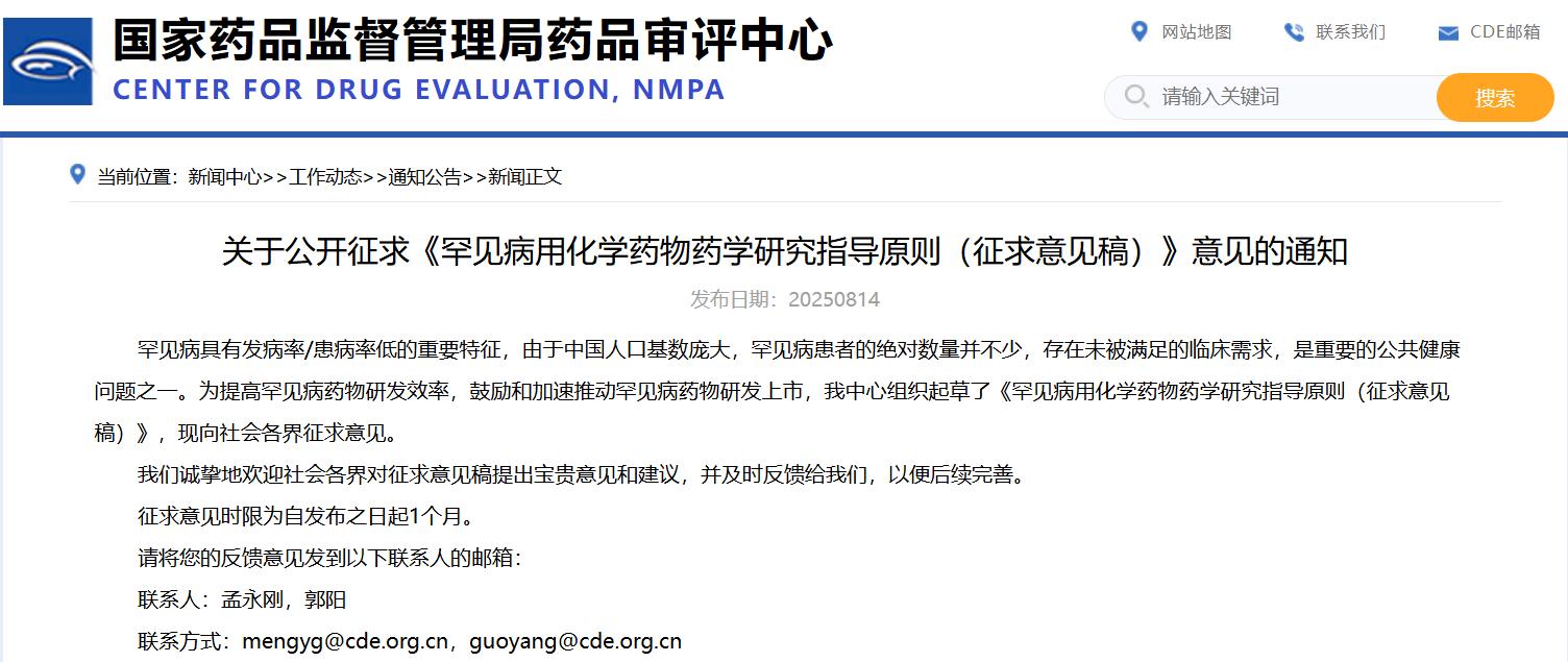 關(guān)于公開(kāi)征求《罕見(jiàn)病用化學(xué)藥物藥學(xué)研究指導(dǎo)原則(征求意見(jiàn)稿)》意見(jiàn)的通知