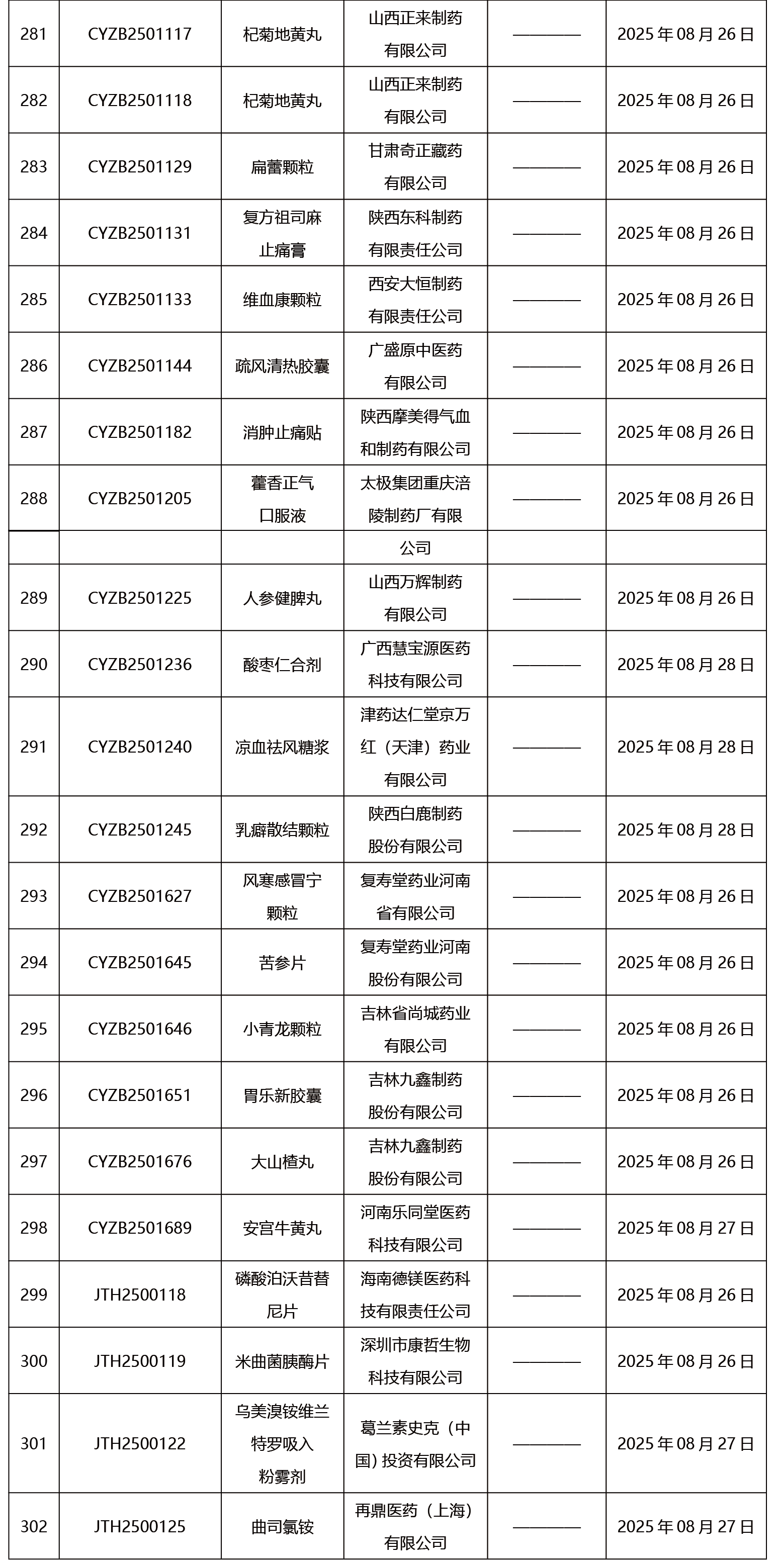 本周共發(fā)布302項藥品批準證明文件送達信息。