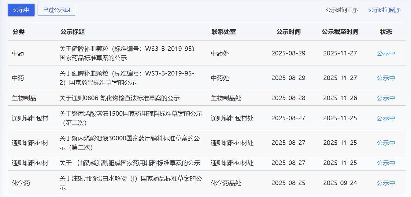 近期,藥典委發(fā)布的標準草案公示如下: