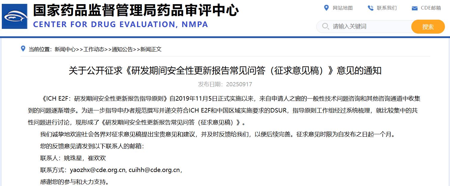 關(guān)于公開征求《研發(fā)期間安全性更新報告常見問答(征求意見稿)》意見的通知