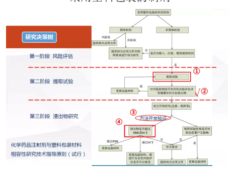 同時(shí),結(jié)合不同給藥途徑的風(fēng)險(xiǎn)分級(jí)以及制劑與包裝組件發(fā)生相互作用的可能性進(jìn)行評(píng)估,來確定最終的研究方案。