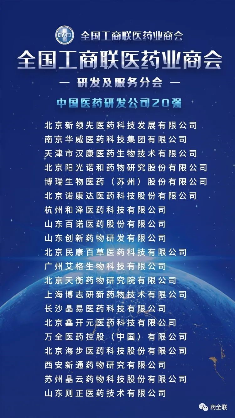 2019年度中國醫(yī)藥行業(yè)最具影響力榜單發(fā)布新領(lǐng)先榮獲中國醫(yī)藥研發(fā)公司20強榜首