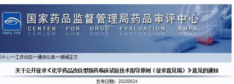 2020年6月24日,國家藥品監(jiān)督管理局藥品審評中心公布了《化學藥品改良型新藥臨床試驗技術指導原則(征求意見稿)》,不到5000字的內容,卻蘊含巨大的信息量。