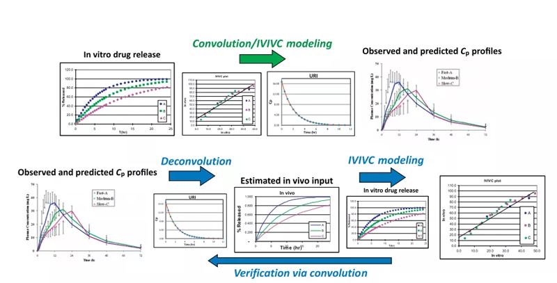 為更好了解體內(nèi)外相關(guān)性,將體內(nèi)外進(jìn)行橋接,采用數(shù)學(xué)模型描述藥物體外性質(zhì)(溶出曲線)與體內(nèi)特性(血藥濃度和藥物吸收量)關(guān)系,利用該模型,采用仿制藥的溶出曲線,預(yù)測(cè)體內(nèi)吸收,進(jìn)行虛擬生物等效性試驗(yàn)。預(yù)判仿制制劑與原研制劑的生物等效性,提高臨床試驗(yàn)的成功率。