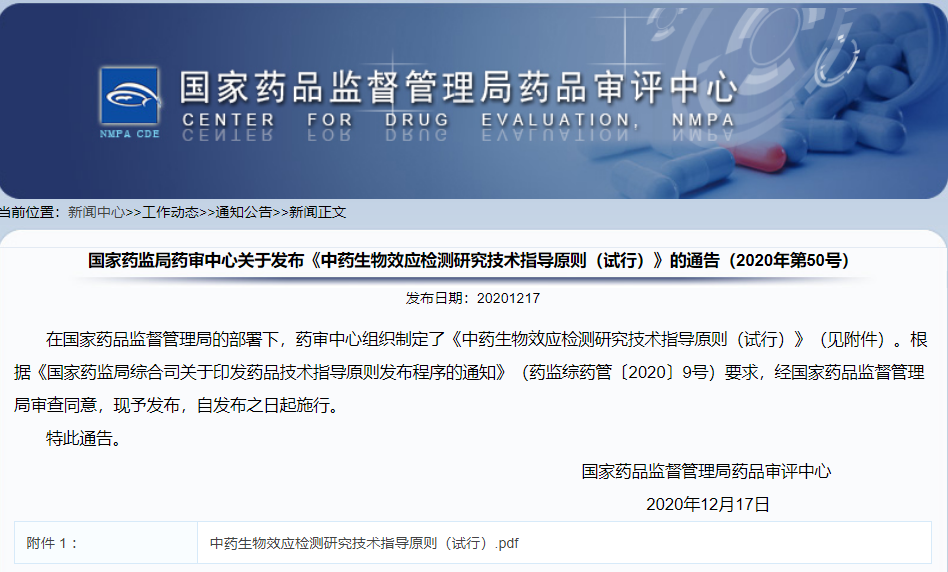 關(guān)于發(fā)布《中藥生物效應(yīng)檢測(cè)研究技術(shù)指導(dǎo)原則(試行)》的通告(2020年第50號(hào))