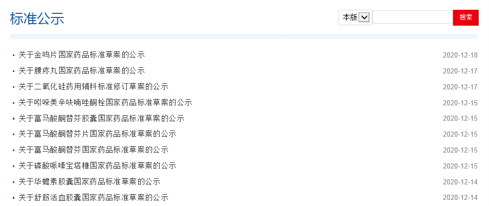 本周金鳴片、腰疼丸、吲哚美辛呋喃唑酮栓、富馬酸酮替芬膠囊、富馬酸酮替芬片、富馬酸酮替芬、磷酸哌嗪寶塔糖、華蟾素膠囊、舒筋活血膠囊、復(fù)方龍膽碳酸氫鈉片、三痹熱寶熨劑、麝香拔濕膏、蛇膽川貝液、清金糖漿國(guó)家藥品標(biāo)準(zhǔn)公示,二氧化硅藥用輔料標(biāo)準(zhǔn)修訂草案公示。