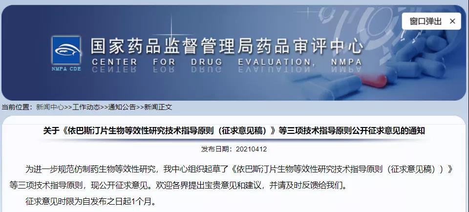 關(guān)于《依巴斯汀片生物等效性研究技術(shù)指導(dǎo)原則(征求意見稿)》等三項(xiàng)技術(shù)指導(dǎo)原則公開征求意見的通知