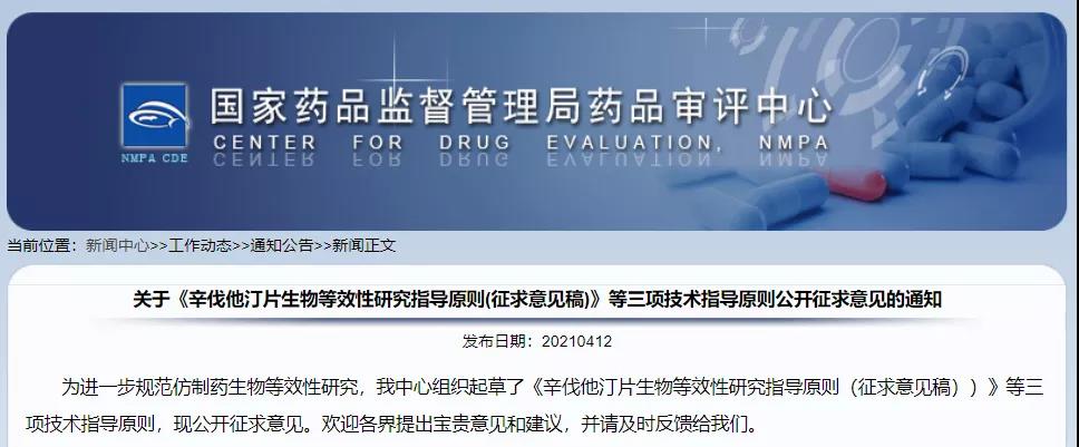 關(guān)于《辛伐他汀片生物等效性研究指導(dǎo)原則(征求意見稿)》等三項(xiàng)技術(shù)指導(dǎo)原則公開征求意見的通知