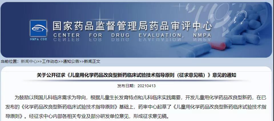 關(guān)于公開征求《兒童用化學(xué)藥品改良型新藥臨床試驗(yàn)技術(shù)指導(dǎo)原則(征求意見稿)》意見的通知