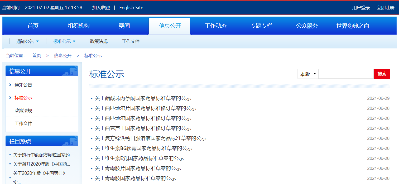 本周醋酸環(huán)丙孕酮、復方鋅鐵鈣口服溶液、維生素B6軟膏、維生素E乳、青霉胺片、青霉胺國家藥品標準草案公示;曲匹地爾、曲匹地爾片、曲克蘆丁國家藥品標準修訂草案公示。