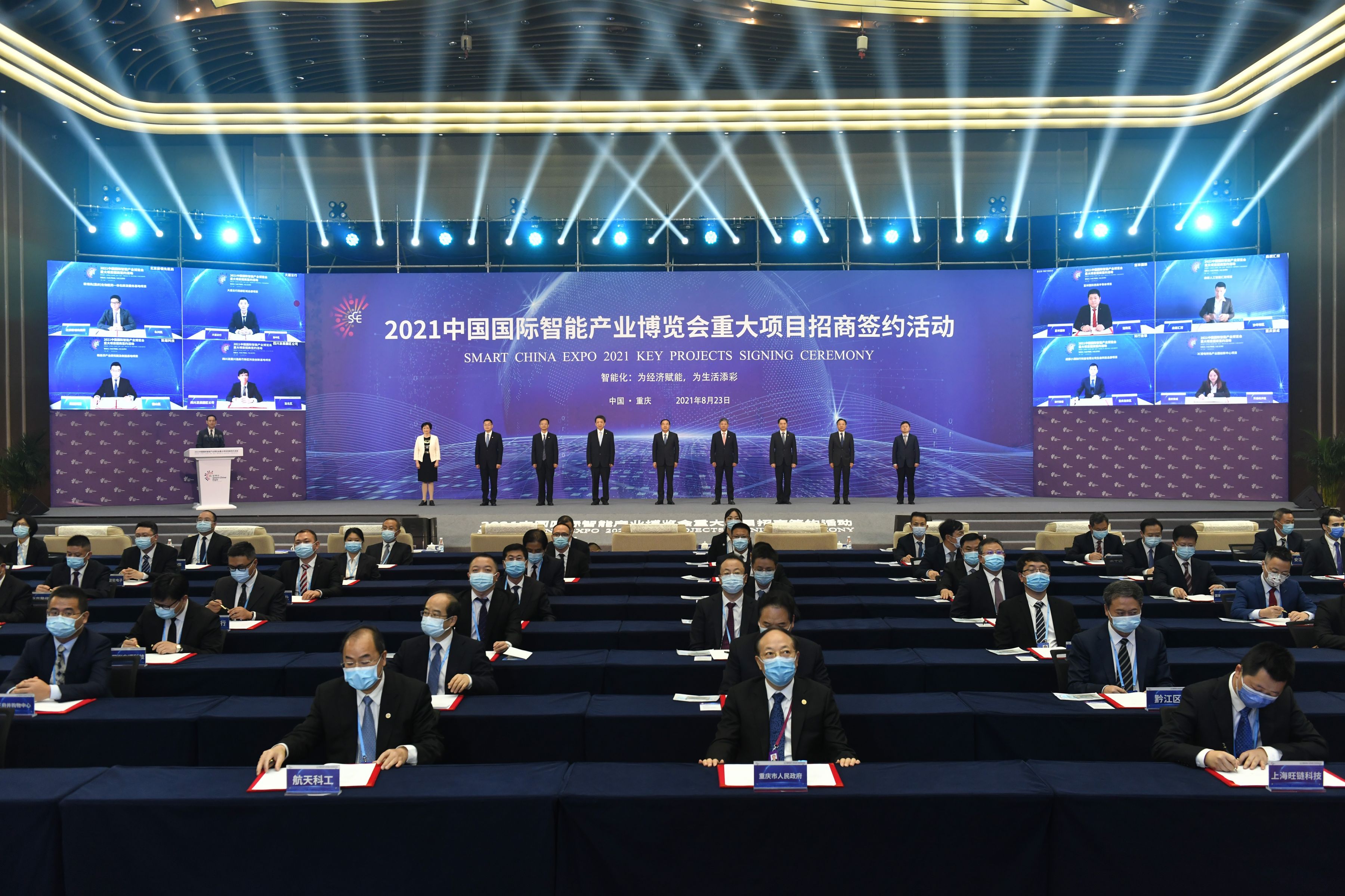 ▲北京新領(lǐng)先陶新華董事長通過線上方式在智博會永川專場簽約儀式上發(fā)言