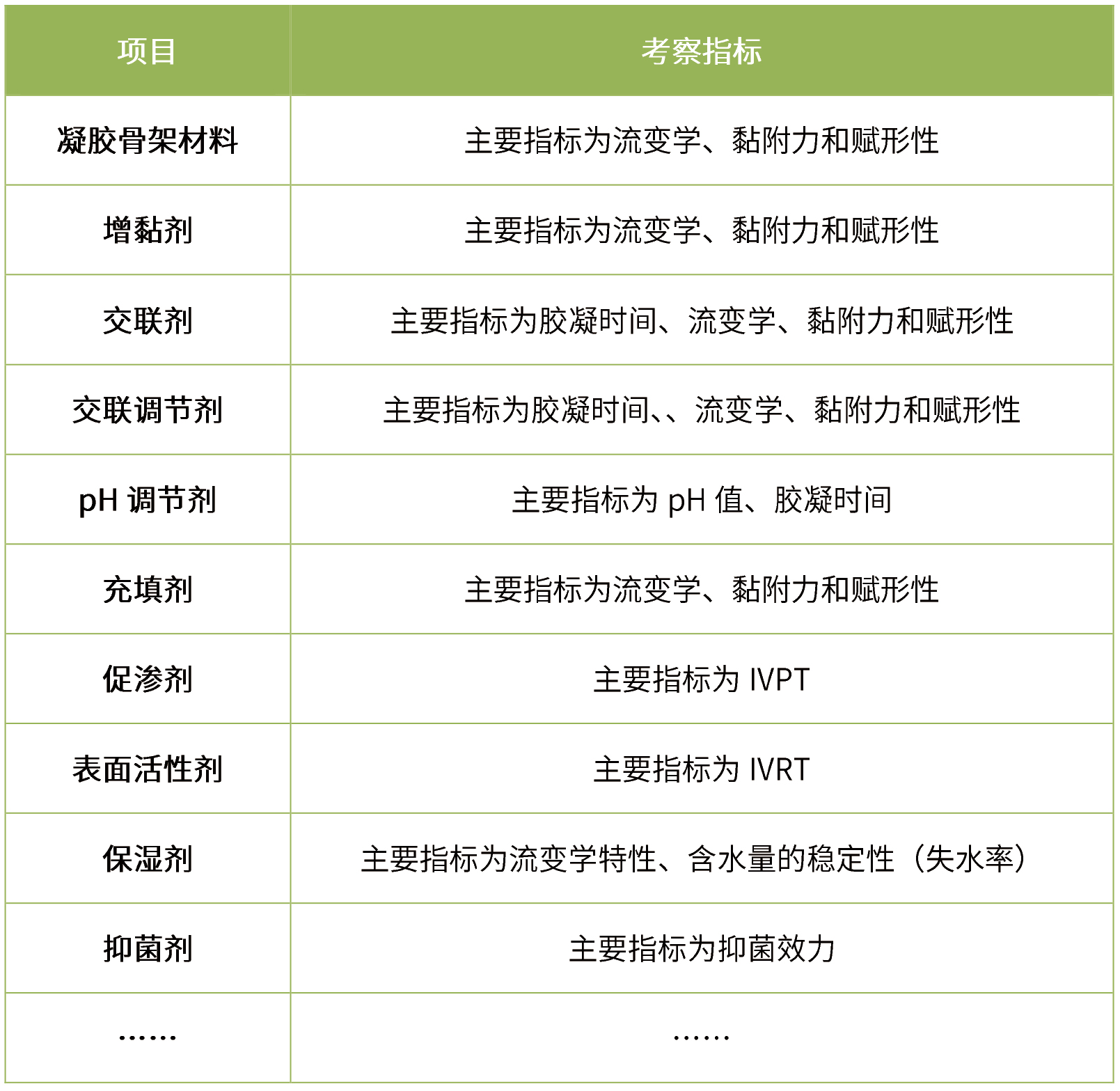 凝膠貼膏劑所使用的輔料與材料可能包括凝膠骨架、促滲劑、增溶劑、增塑劑、增黏劑、保濕劑、充填劑、抗氧劑、抑菌劑、交聯(lián)劑、交聯(lián)調(diào)節(jié)劑、結(jié)晶抑制劑、背襯材料、保護(hù)層等。研究者應(yīng)根據(jù)輔料與材料的特性以及在制劑中的用途,對(duì)輔料與材料(特別是可能影響藥物黏附性、滲透性及生物利用度的輔料與材料)的功能性相關(guān)指標(biāo)進(jìn)行研究,并在物料內(nèi)控標(biāo)準(zhǔn)中予以體現(xiàn)。
