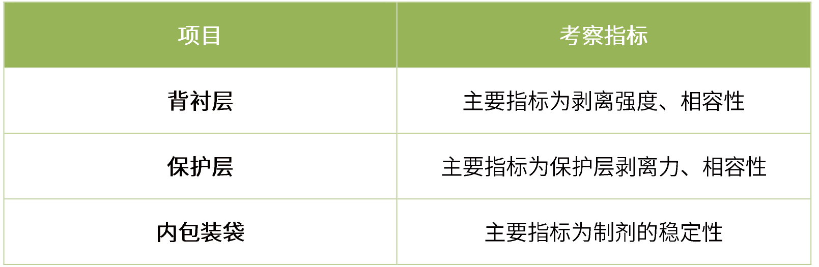 膜性材料 應(yīng)根據(jù)其不同用途進(jìn)行相關(guān)研究,如背襯材料、保護(hù)層等應(yīng)對(duì)外觀、柔韌性、抗拉強(qiáng)度、孔隙率、密封性(Occlusion)、化學(xué)惰性等特性進(jìn)行研究。