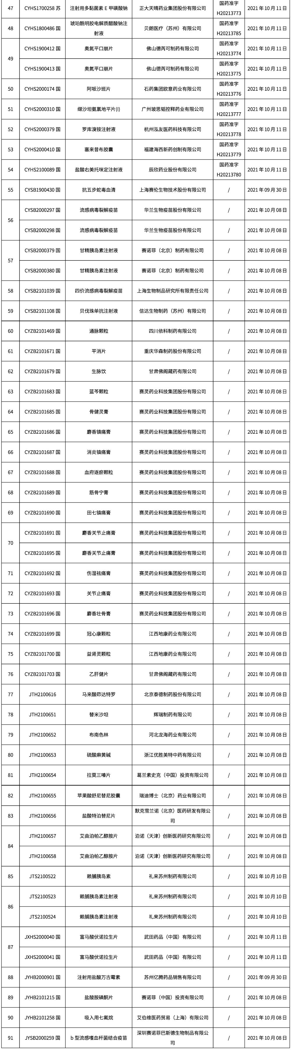 1. 本周共計91個品種取得藥品批準證明文件,其中一致性評價品種11個,注射劑品種27個。