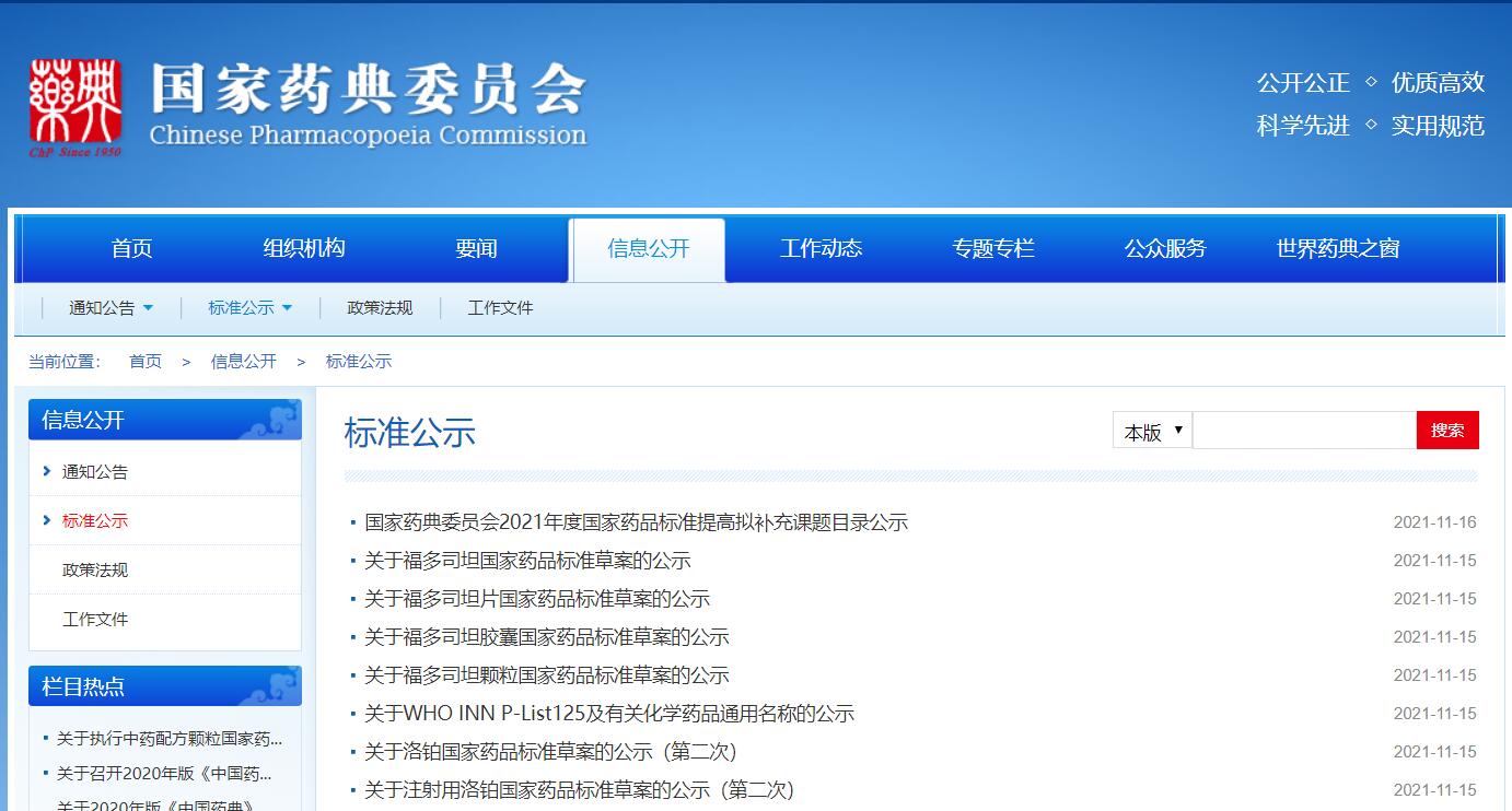 本周福多司坦、福多司坦片、福多司坦膠囊、福多司坦顆粒、洛鉑、注射用洛鉑國家藥品標(biāo)準(zhǔn)草案公示,WHO INN P-List125及有關(guān)化學(xué)藥品通用名稱的公示。
