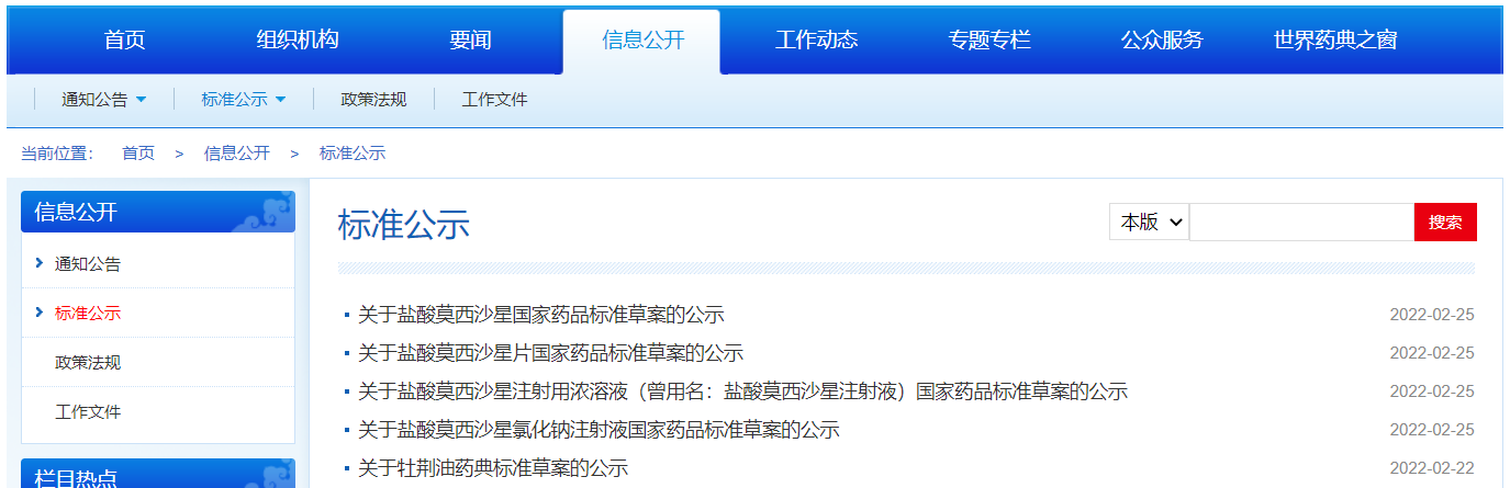 本周鹽酸莫西沙星、鹽酸莫西沙星片、鹽酸莫西沙星注射用濃溶液(曾用名:鹽酸莫西沙星注射液)、鹽酸莫西沙星氯化鈉注射液國家藥品標準草案公示,牡荊油藥典標準草案的公示。