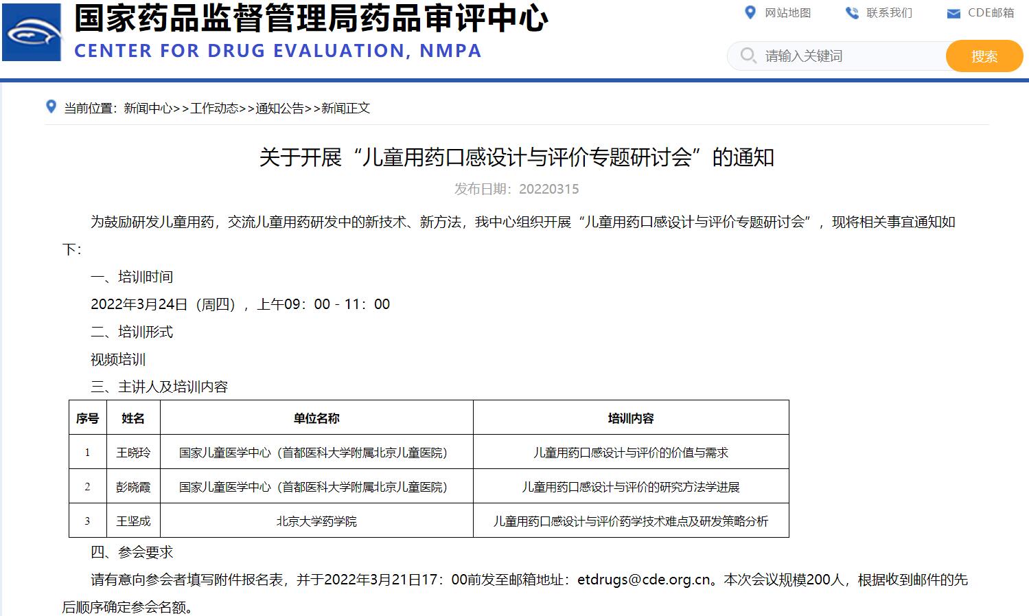 關(guān)于開展“兒童用藥口感設(shè)計與評價專題研討會”的通知
