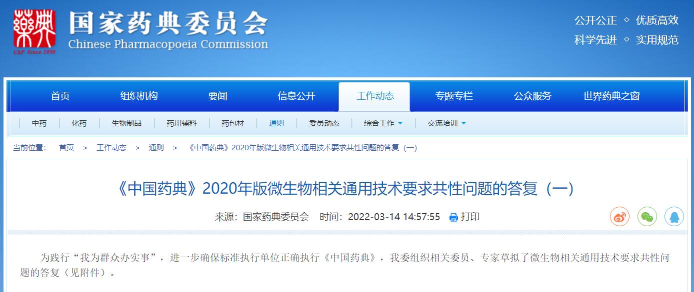 《中國藥典》2020年版微生物相關(guān)通用技術(shù)要求共性問題的答復(fù)(一)