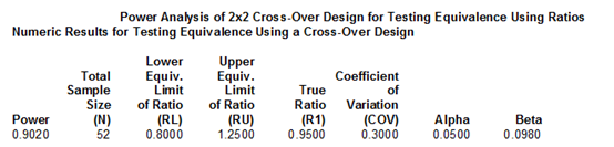 總結:當個體內(nèi)變異系數(shù)為 15% 時,軟件計算所得的樣本需求量為 15 例,而當體內(nèi)變異系數(shù)為 30% 時,軟件計算所得的樣本需求量為 52 例,由此可知:如果一個品種個體內(nèi)變異越高,滿足生物等效性標準所需的受試者樣本量就越大。