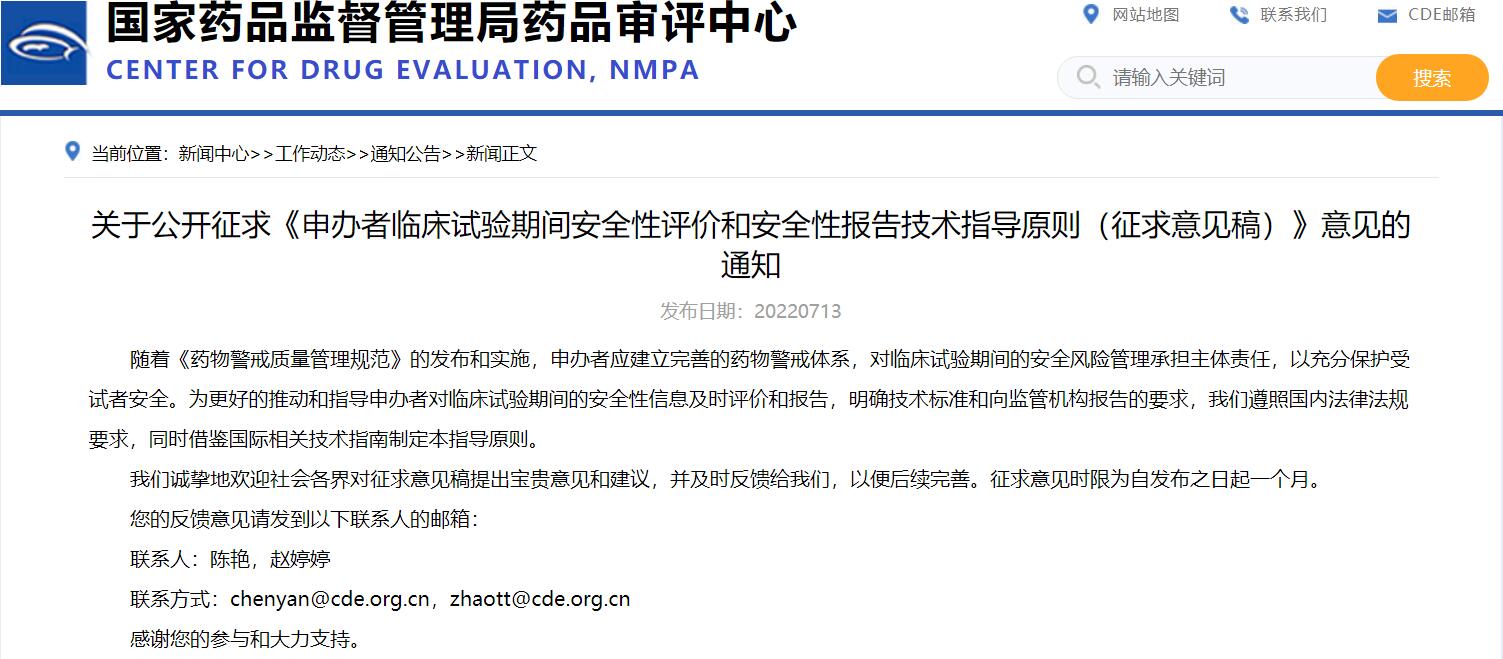 政策法規(guī)||公開(kāi)征求《申辦者臨床試驗(yàn)期間安全性評(píng)價(jià)和安全性報(bào)告技術(shù)指導(dǎo)原則(附本周法規(guī)概覽07.11-07.15)