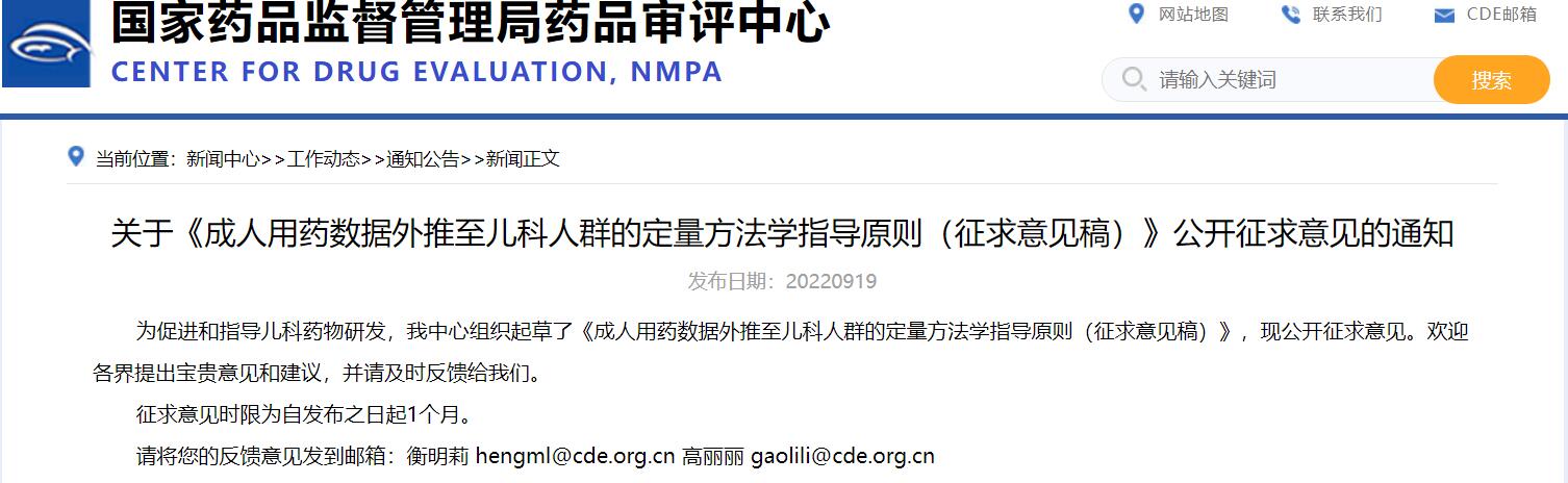 政策法規(guī)||?《成人用藥數(shù)據(jù)外推至兒科人群的定量方法學(xué)指導(dǎo)原則(征求意見(jiàn)稿)》發(fā)布(附本周法規(guī)概覽09.19-09.23)