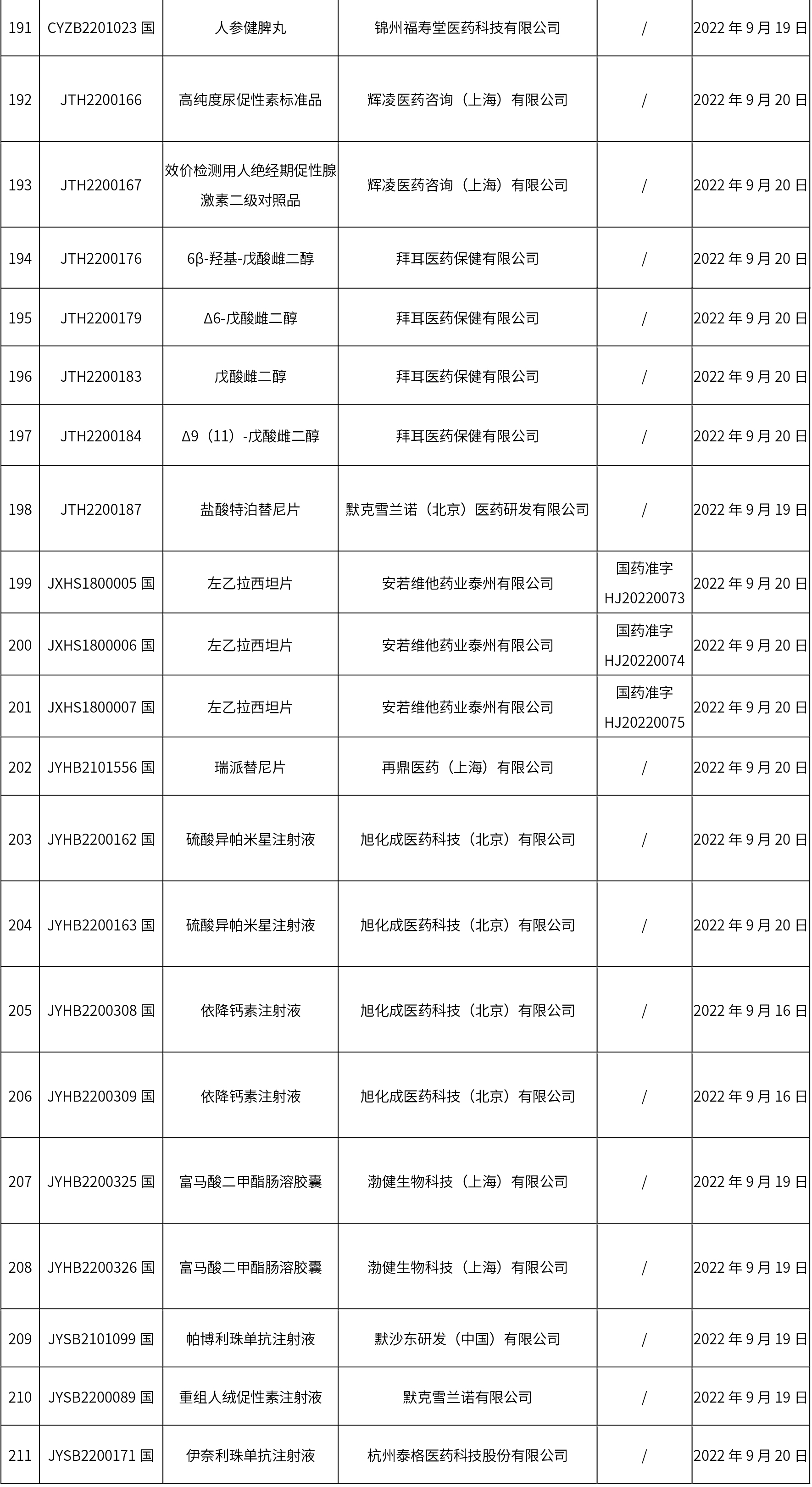 1. 本周(截止09.30中午12:15)共發(fā)布了211個品規(guī)的藥品批準(zhǔn)證明文件待領(lǐng)取信息,其中一致性評價27個,注射劑51個(其中1個為滅菌注射用水)。