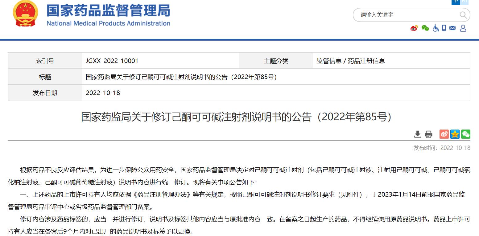 國(guó)家藥監(jiān)局關(guān)于修訂己酮可可堿注射劑說(shuō)明書(shū)的公告(2022年第85號(hào))
