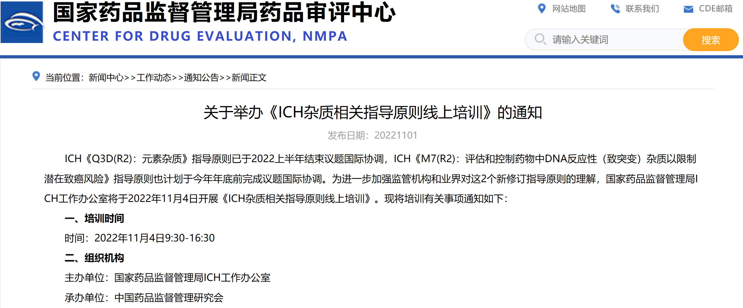 關(guān)于舉辦《ICH雜質(zhì)相關(guān)指導(dǎo)原則線上培訓(xùn)》的通知