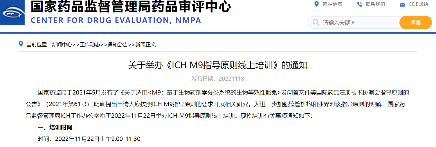 關(guān)于舉辦《ICH M9指導原則線上培訓》的通知
