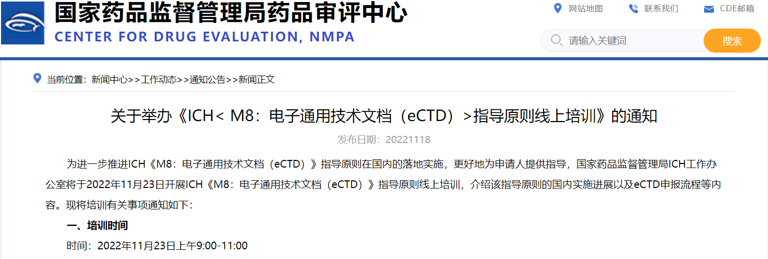關(guān)于舉辦《ICH< M8:電子通用技術(shù)文檔(eCTD)>指導原則線上培訓》的通知