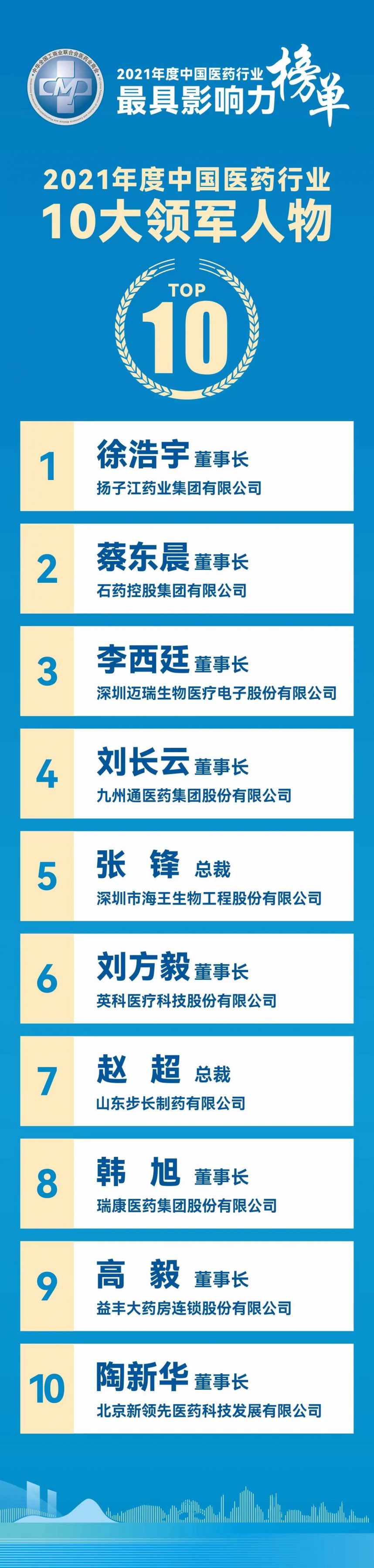 最具影響力榜單發(fā)布,陶新華董事長當(dāng)選“2021年度中國醫(yī)藥行業(yè)10大領(lǐng)軍人物”