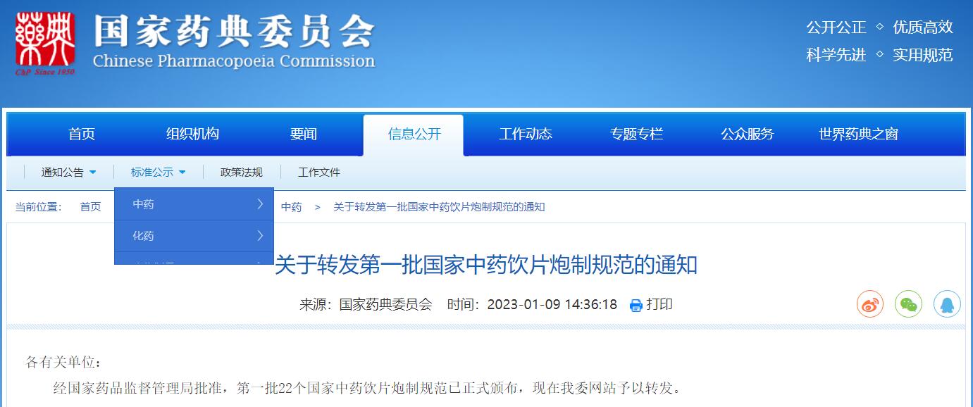 本周發(fā)布4個(gè)國(guó)家藥品標(biāo)準(zhǔn)草案的公示,1個(gè)征求檢測(cè)方法草案意見(jiàn)的函,1個(gè)征求指導(dǎo)原則草案意見(jiàn)的函,并轉(zhuǎn)發(fā)關(guān)于第一批國(guó)家中藥飲片炮制規(guī)范的通知。