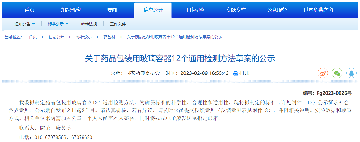 關(guān)于藥品包裝用玻璃容器12個通用檢測方法草案的公示