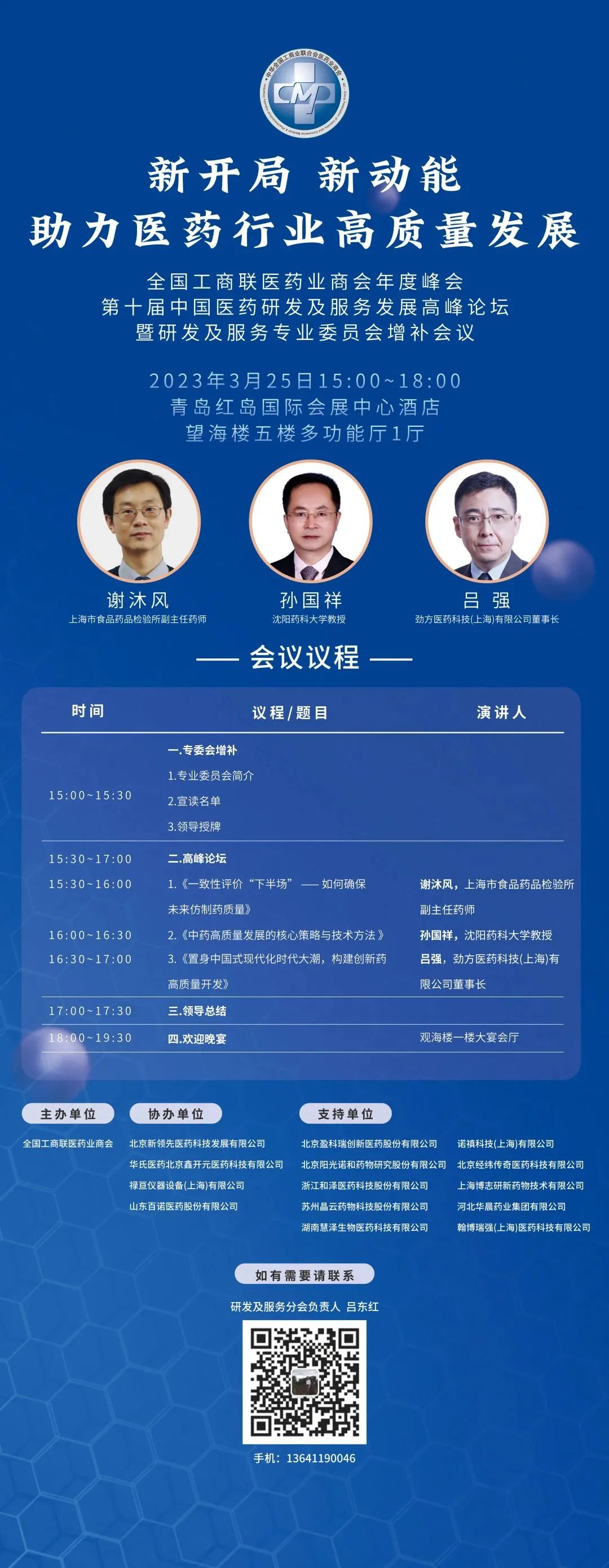 由全國(guó)工商聯(lián)醫(yī)藥業(yè)商會(huì)主辦,北京新領(lǐng)先醫(yī)藥聯(lián)合承辦的全國(guó)工商聯(lián)醫(yī)藥業(yè)商會(huì)年度峰會(huì)暨第十屆中國(guó)醫(yī)藥研發(fā)及服務(wù)發(fā)展高峰論壇將于3月25-27日在青島召開(kāi)。