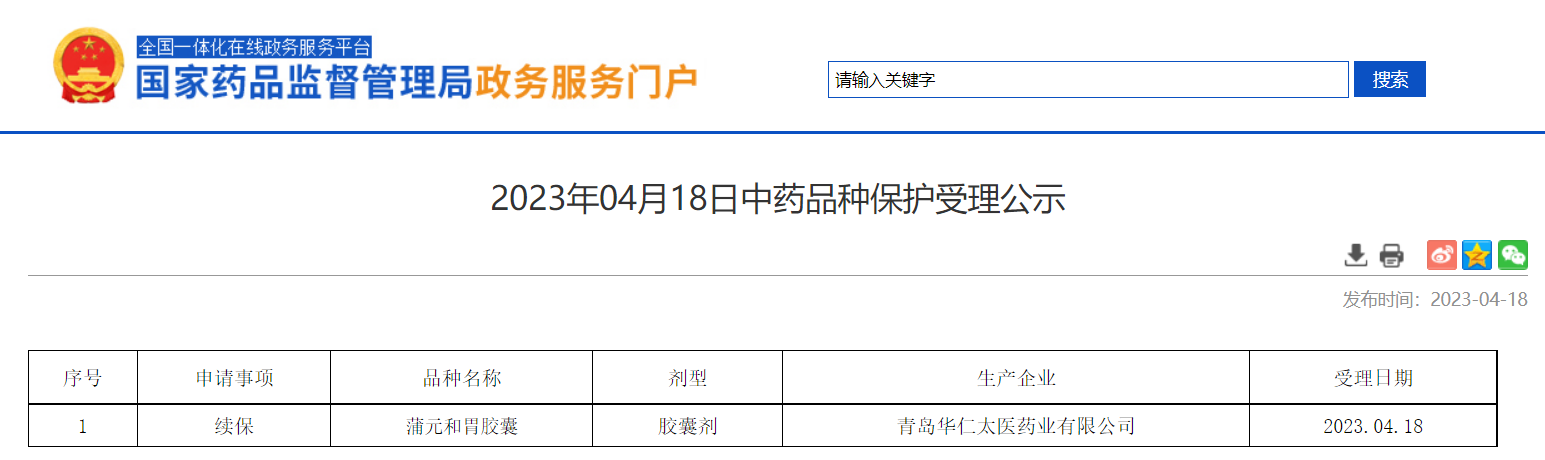 2023年04月18日中藥品種保護(hù)受理公示