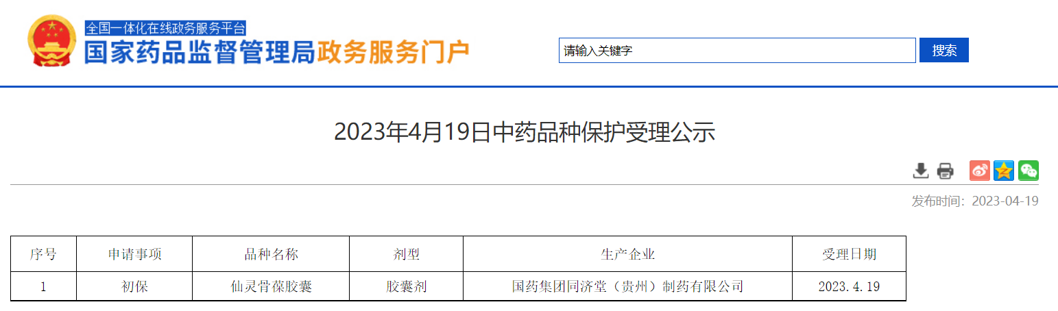 2023年4月19日中藥品種保護(hù)受理公示