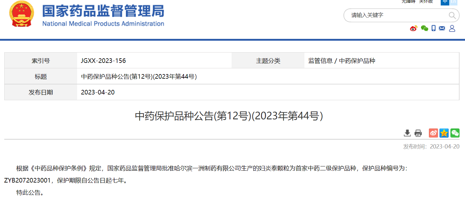 中藥保護(hù)品種公告(第12號)(2023年第44號)
