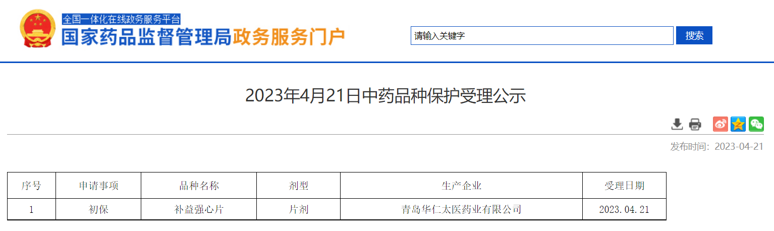 2023年4月21日中藥品種保護(hù)受理公示