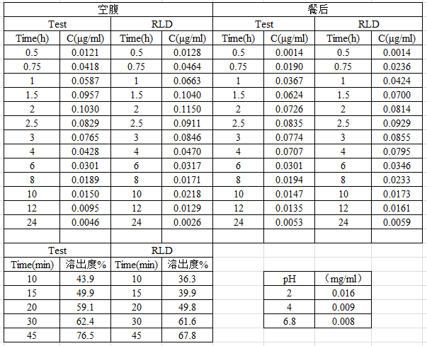 • 理化與生物藥劑學(xué)參數(shù):活性成分結(jié)構(gòu)式、分子量、脂溶性、各pH條件下飽和溶解度、脂溶性、滲透性、pKa、熔點、化學(xué)化學(xué)降解速率、血漿蛋白結(jié)合率、全血血漿藥物濃度比等。
