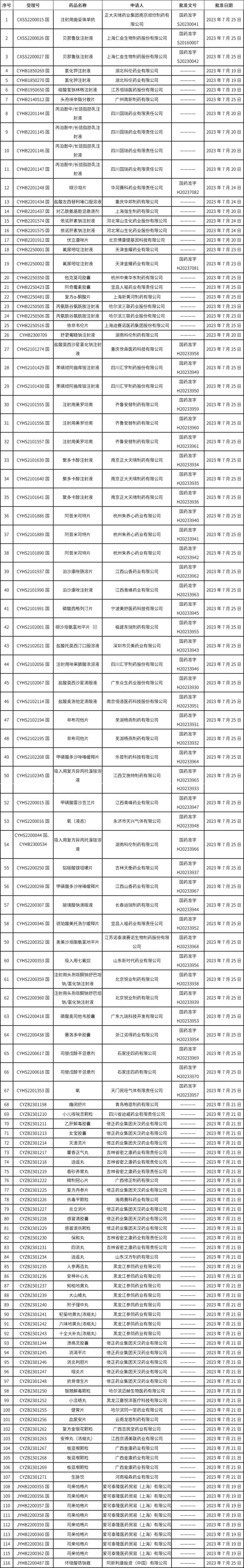 1、截止2023年7月28日 17:00本周發(fā)布117個(gè)待領(lǐng)取藥品批準(zhǔn)證明文件,其中注射液25個(gè),11個(gè)一致性評(píng)價(jià)品種。