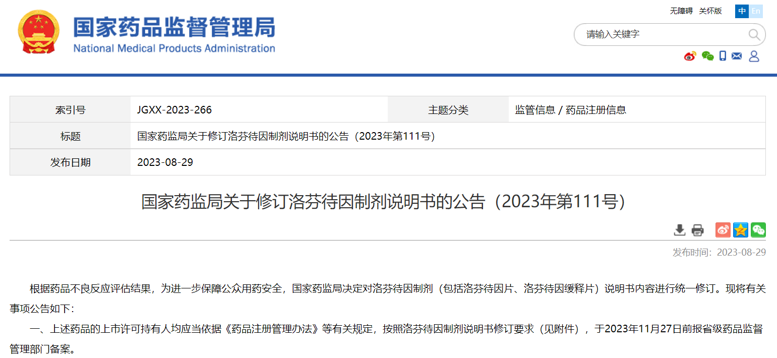 國(guó)家藥監(jiān)局關(guān)于修訂洛芬待因制劑說(shuō)明書(shū)的公告(2023年第111號(hào))