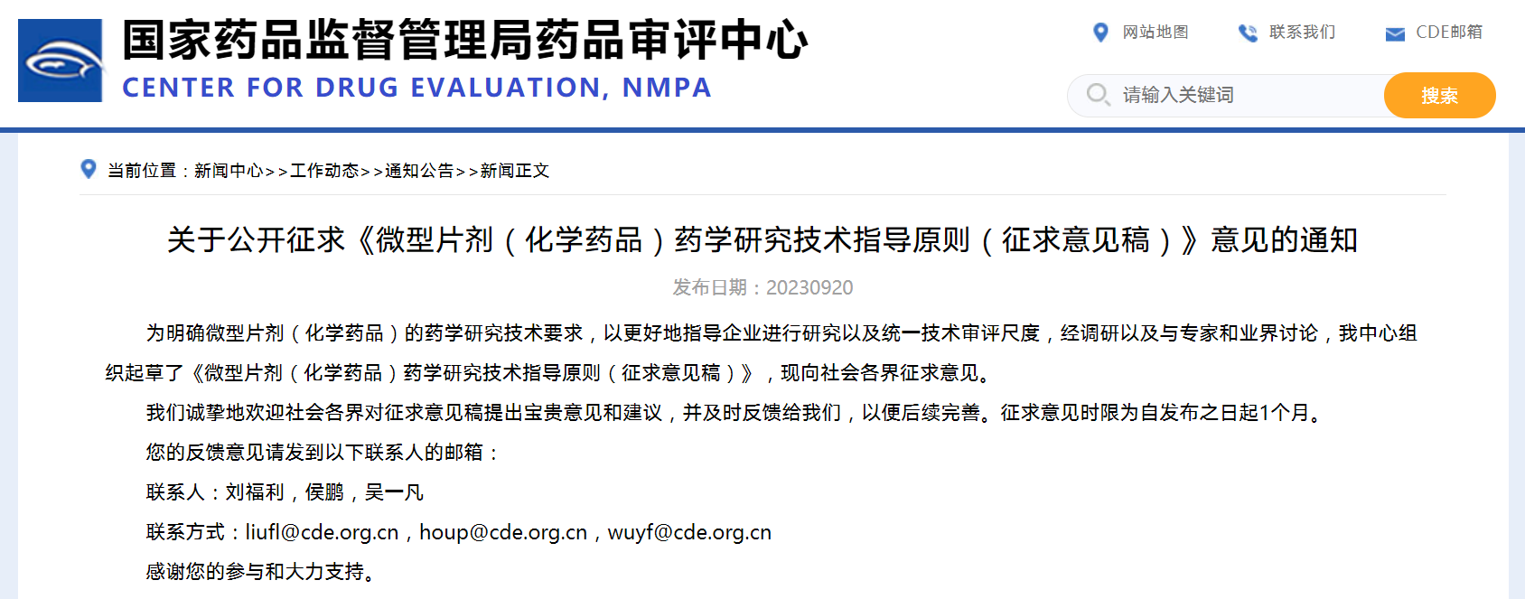 關(guān)于公開(kāi)征求《微型片劑(化學(xué)藥品)藥學(xué)研究技術(shù)指導(dǎo)原則》(征求意見(jiàn)稿)意見(jiàn)的通知