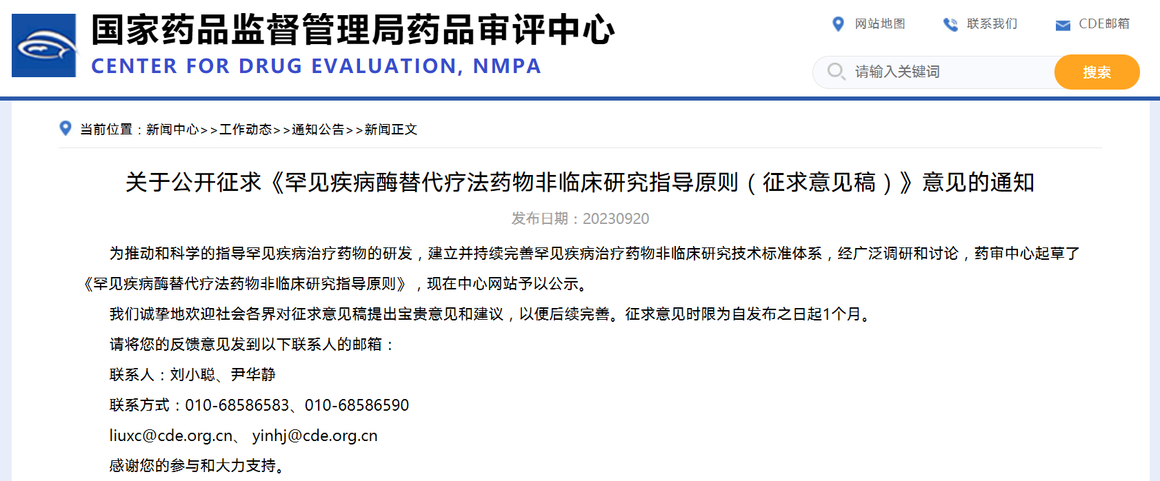 關(guān)于公開(kāi)征求《罕見(jiàn)疾病酶替代療法藥物非臨床研究指導(dǎo)原則》(征求意見(jiàn)稿)意見(jiàn)的通知