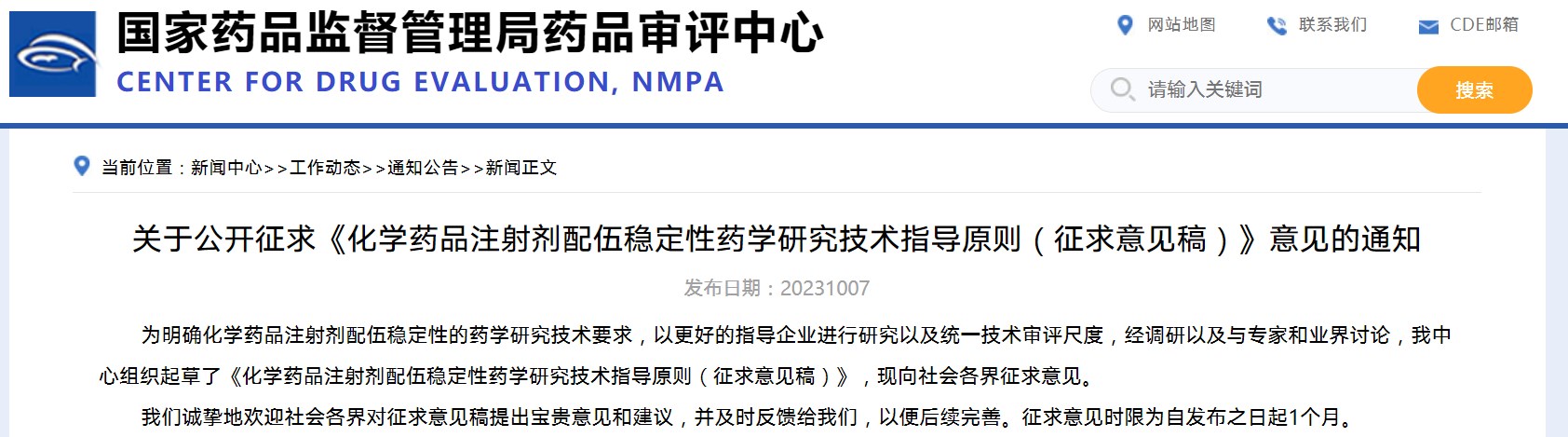 關于公開征求《化學藥品注射劑配伍穩(wěn)定性藥學研究技術指導原則》意見的通知