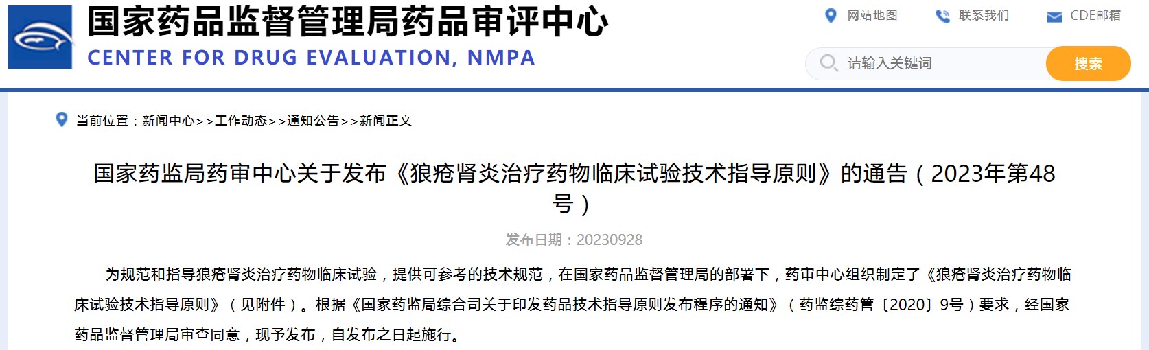 國家藥監(jiān)局藥審中心關于發(fā)布《狼瘡腎炎治療藥物臨床試驗技術指導原則》的通告(2023年第48號)