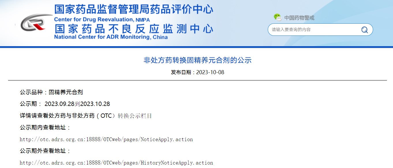 非處方藥轉換固精養(yǎng)元合劑的公示