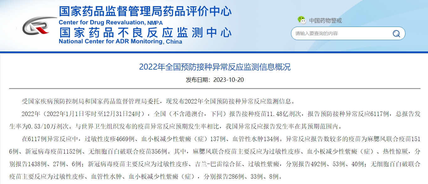2022年全國預(yù)防接種異常反應(yīng)監(jiān)測信息概況